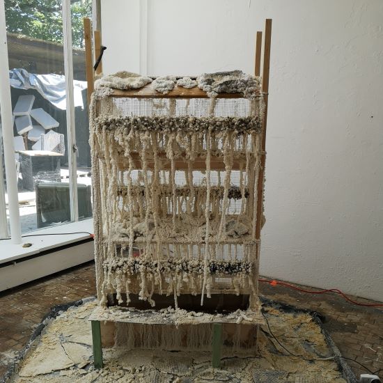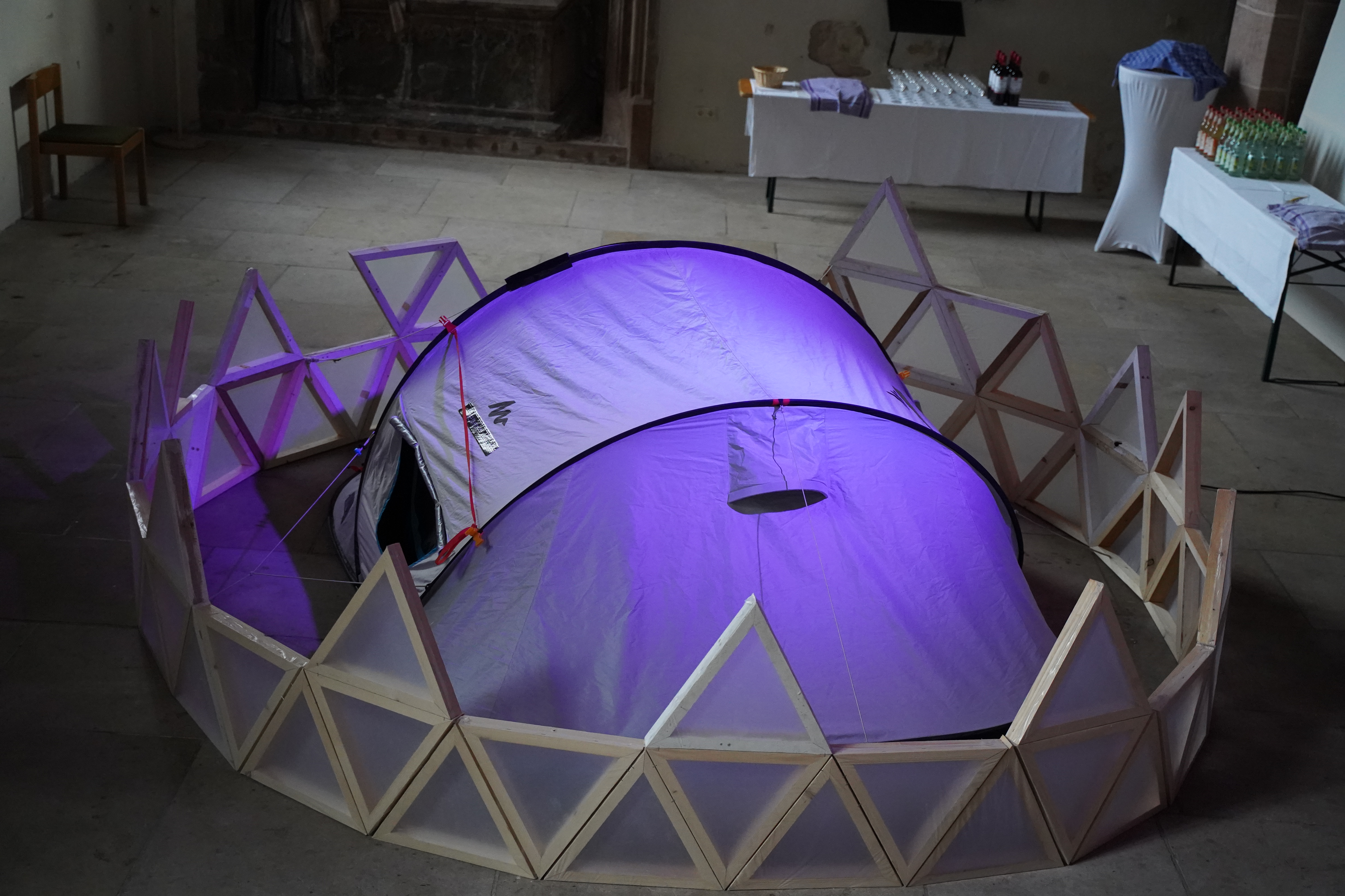 Holzkonstruktion, Molton, Vorhang, 160 x 80 x 210 cm
